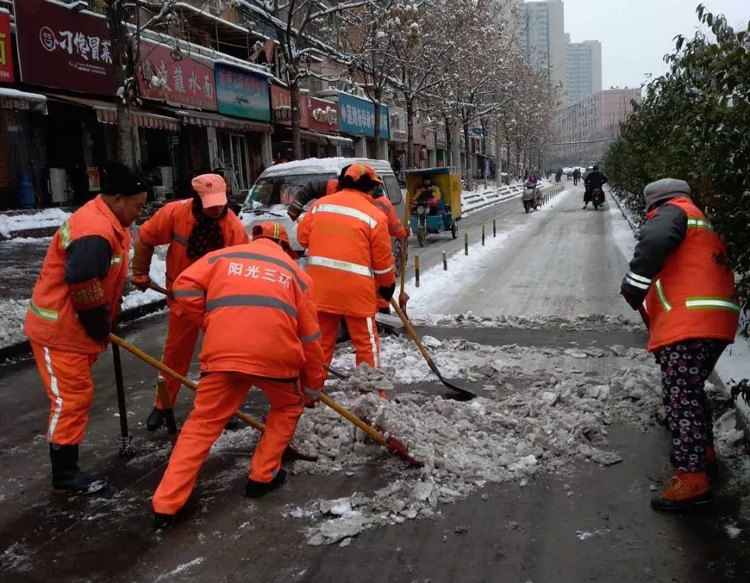 目前,除雪工作依然緊張,西安項目部全體環衛工人“上陣作戰”,全力以赴,清雪除冰保暢通,保障市民安全出行。