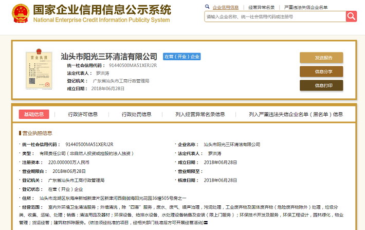 2、汕頭市陽光三環清潔有限公司
