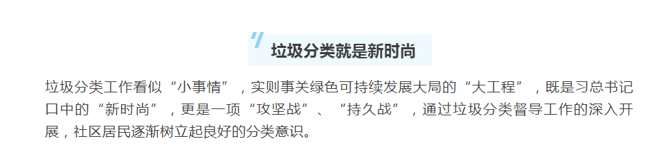 垃圾分類督導員是引導居民群眾正確分類投放垃圾的小管家,他們是垃圾分類的示范者、引領者,為垃圾分類工作發(fā)揮著橋梁紐帶的作用。