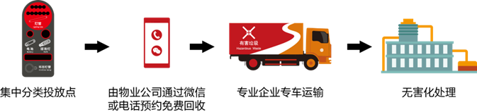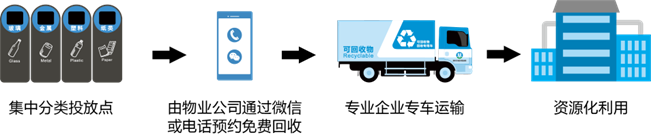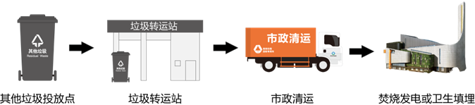 目前深圳市住宅區(qū)垃圾分類投放點的有害垃圾、玻金塑紙、廚余垃圾、廢舊家具(年花年桔)、廢舊織物和其他垃圾都是由政府招標的專業(yè)企業(yè)專車進行分類收運,末端會有不同的處理設施進行分類處理。