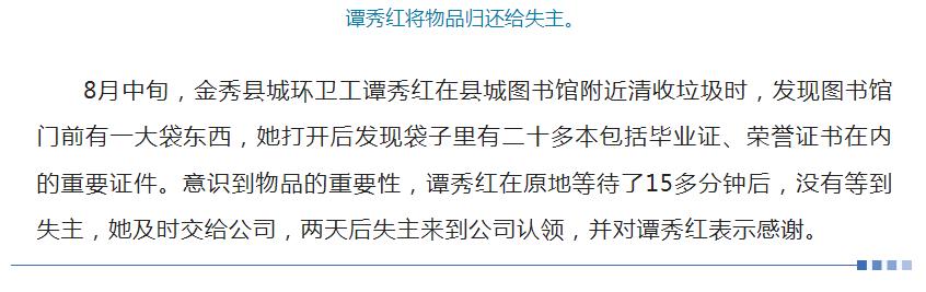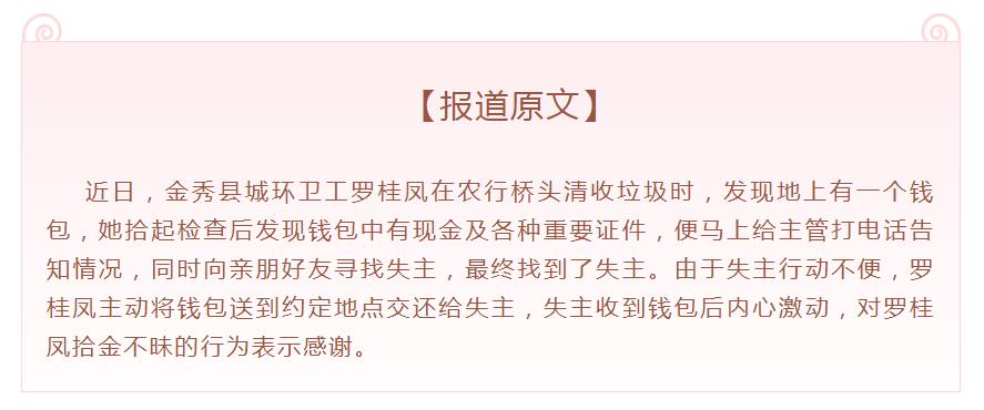【轉載】媒體報道陽光三環環衛工人事跡《拾金不昧環衛工 傳遞創城文明新風》