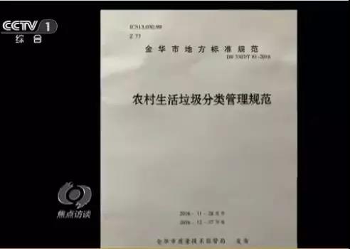 4月2日晚,中央電視臺《焦點訪談》欄目專題報道了浙江金華垃圾分類的做法。用整檔超15分鐘的時長,詳盡介紹了金華垃圾分類從無到有,從有到好,成為村民自覺行為,改變人們生活,提升美化村容村貌的好經驗。同時,節目中還報道:金華農村垃圾分類經驗立法獲批準,進一步促進地方實踐規范化、法治化。